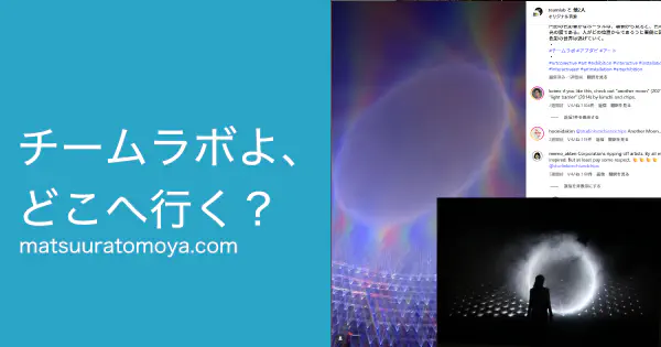 この文章は私のチームラボに関する回顧録と現在のチームラボに対する私の意見を綴ったものだ。 筆を取ったきっかけとなったのは、チームラボのアブダビでの大規模常設展で発表された新作のムービングライト作品がメディアアートユニットであるKimchi and Chipsの作品に似ていると言う議論 ………