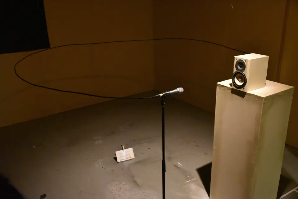 Usually a micophone and speaker will not be set to face-to-face. Usually if we intercept the feedback, sounds will be eliminated but this generate sound.