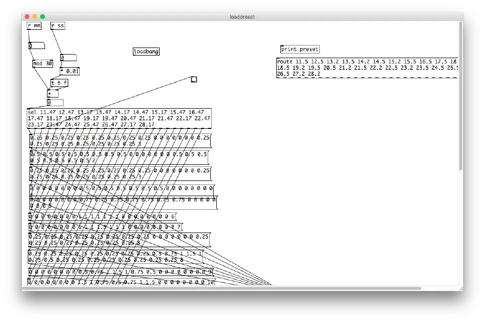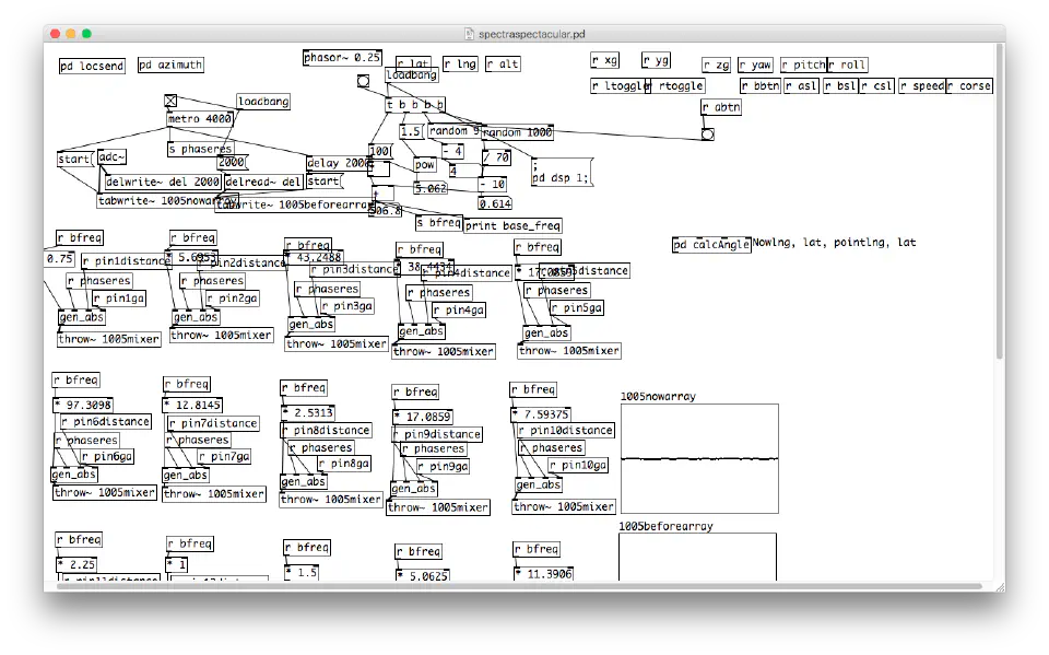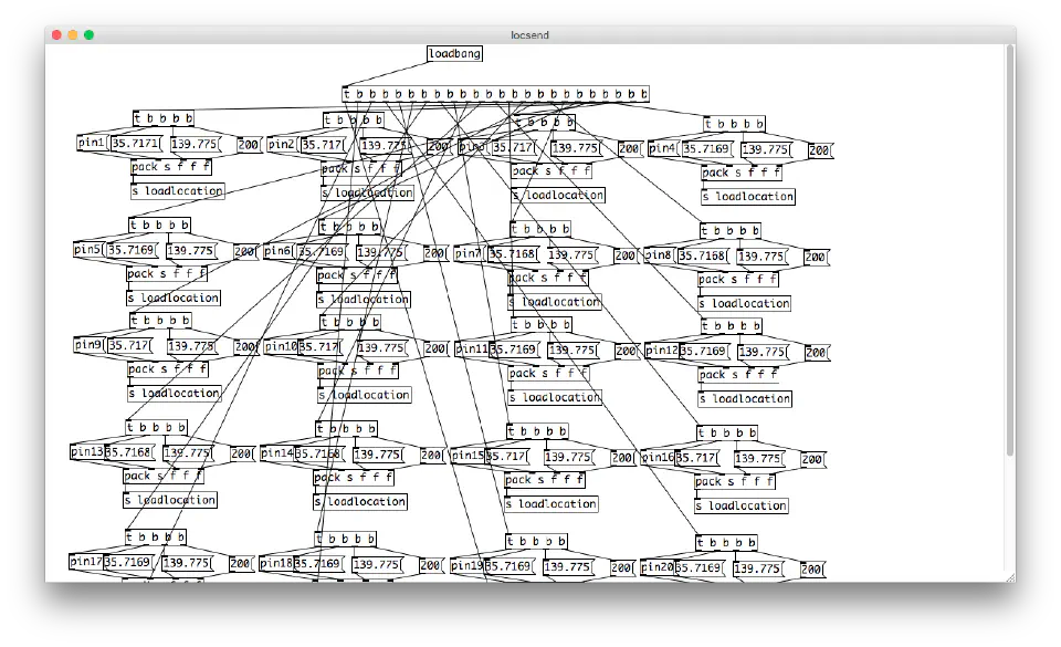 噴水の位置の設定画面。噴水の位置そのものはGoogleMapから取得して使用したが、Puredataの小数点精度が32bitなので正確な緯度経度を組むのが難しかった。